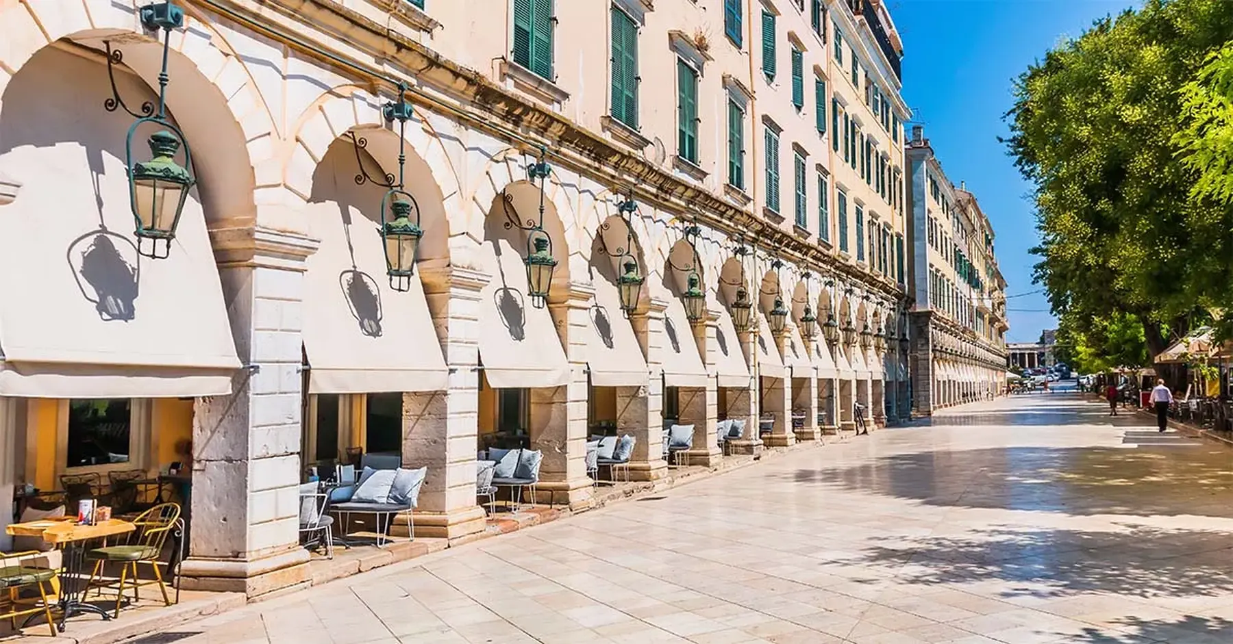 Strolling around Corfu town, it would be easy to mistake it for the Italian coast: think wide esplanades, marble piazzas and restaurants that spill out onto the cobblestones.