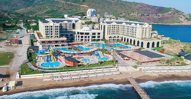 Near the resort of Özdere is the Paloma Pasha. ‘Pasha’ is an honorific term in Turkish, and clients will live like lords here: the Iznik tile-style rooms are spacious, the gigantic lazy river pool winds around the hotel in a W shape, and the circular bar offers panoramic Aegean views on all sides.