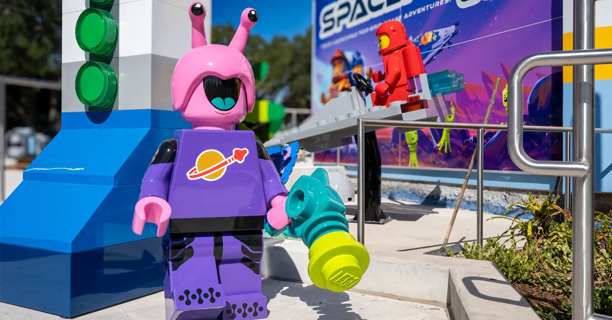 Lego alien at the entrance of Galacticoaster in Legoland Florida.