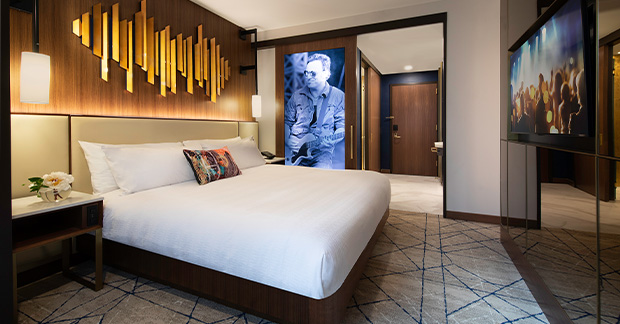 At Hard Rock Hotel New York, lavish gold and marble bathrooms, and guitars available to order to your room, add up to create a stay that’s fit for a rock star – with views over Times Square. Rooms from $399 per night.
