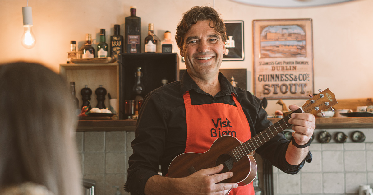 Our chef Bjørn is strumming away on his guitar, belting out his rendition of Johnny Cash’s Ring of Fire. Every time he starts playing the harmonica, he tells us, we must have a gulp of our drinks. Bjørn ran two restaurants with his wife on the island of Hitra before they moved to Trondheim – but this is no restaurant, it’s Bjørn’s front room.