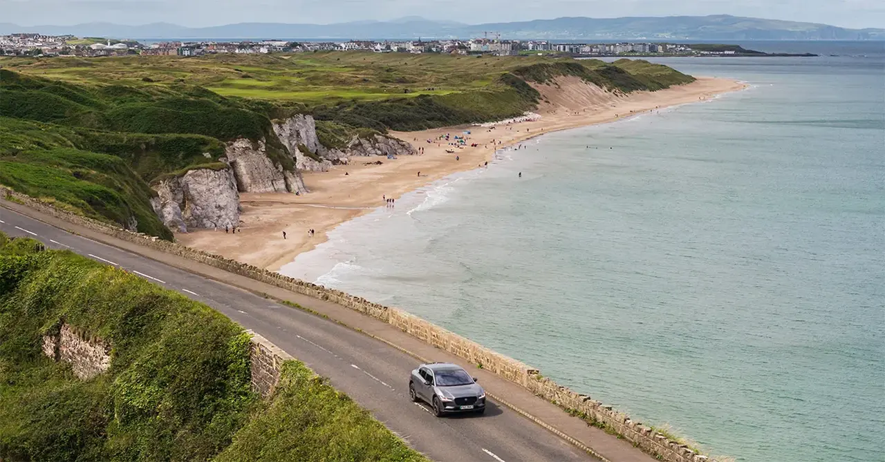 A car on the Causeway Coastal route, County Antrim. Image credit: Richard Watson/Tourism Ireland